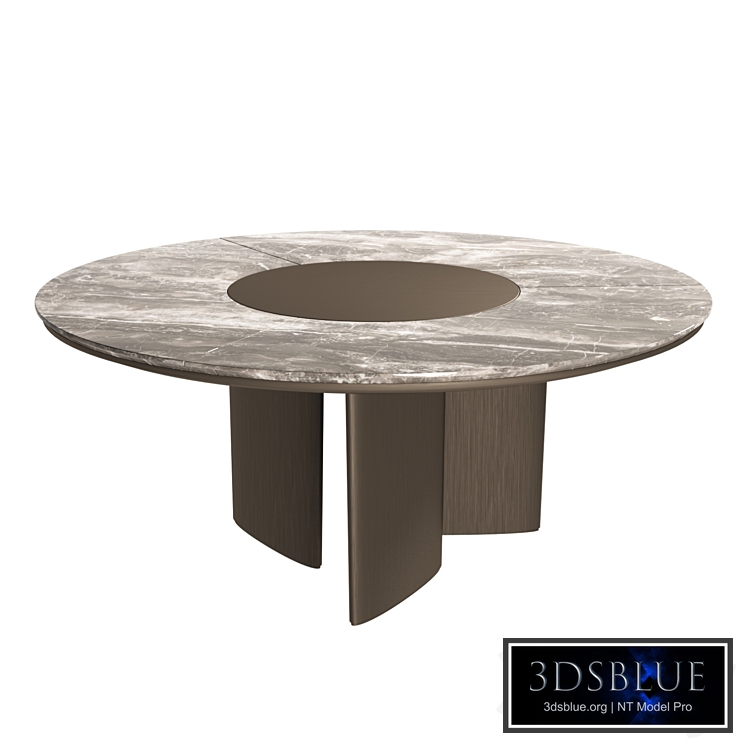 The Ala Round dining table with a round top can be 155 or 165 cm in diameter. The top is made of marble with a thickness of 20 cm (Travertino Silver Brown, Bianco Carrara, Calacatta Oro); legs are made of solid wood, veneer covering, smoky oak finish; the base for marble is made to match the legs. Can be installed in the center of a 20 cm marble turntable. 240 x 240 x h76cm https://www.stels.ru/catalog/ala-round_me.html https://www.stels.ru/catalog/brand/misura-emme/