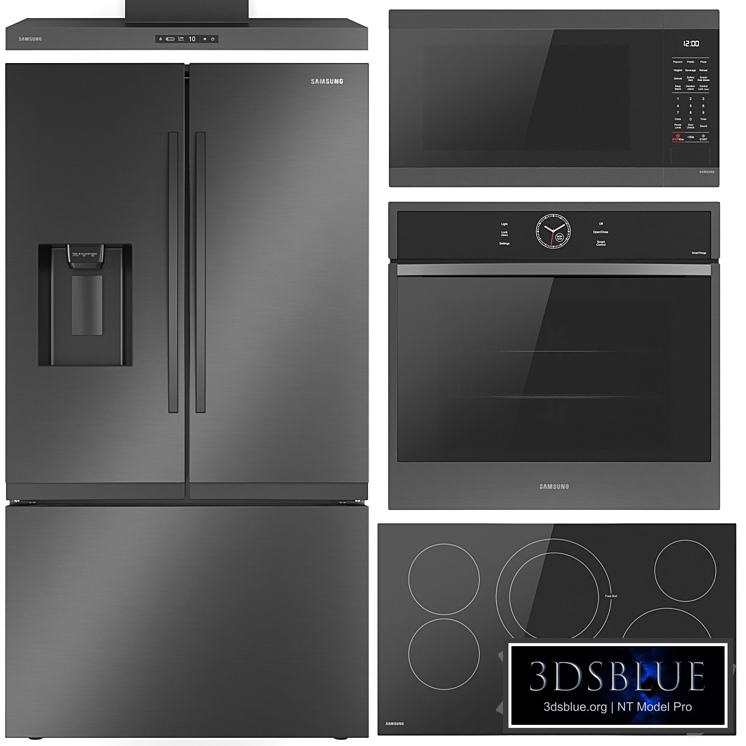 In archive: 3ds max 2015 (corona) 3ds max 2015 (vray) fbx (corona) fbx (vray) obj-mtl Maps _________________________ Render: Corona 6 - Vray 5 Unwrap: yes polys: 200,049 verts: 205,060 Unit: Centimeter _________________________ Dimensions: Refrigerator : Width(94) height(178) Cooktop: Width(90) Hood: Width(90) Link to original products: https://www.samsung.com/us/home-appliances/refrigerators/3-door-french-door/31-cu-ft-mega-capacity-3-door-french-door-refrigerator-with-four-types-of-ice-in-matte-black-steel-rf32cg5400mtaa/ https://www.samsung.com/us/home-appliances/wall-ovens/single/30-single-wall-oven-with-steam-cook-in-matte-black-steel-nv51cg600smtaa/ https://www.samsung.com/us/home-appliances/cooktops-and-hoods/electric-cooktops/36--electric-cooktop-nz36r5330rk-aa/ https://www.samsung.com/us/home-appliances/cooktops-and-hoods/hoods/36-bespoke-smart-wall-mount-hood-with-lcd-display-in-clean-deep-charcoal-nk36cb700w33aa/ https://www.samsung.com/us/home-appliances/microwaves/countertop/1-9-cu-ft-countertop-microwave-with-sensor-cooking-in-stainless-steel-ms19dg8500sraa/