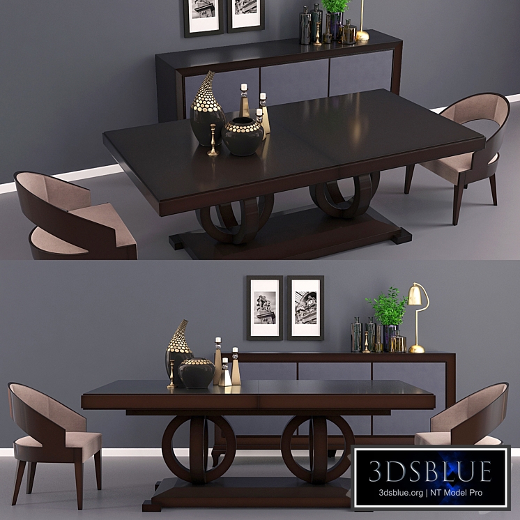 Set includes: Table: TOSCA / Table http://www.archiproducts.com/en/products/117551/rectangular-wooden-table-tosca-table-selva.html Chair: PEGGY / Easy chair http: //www.archiproducts .com / en / products / 117111 / upholstered-leather-easy-chair-with-armrests-peggy-selva.html Sideboard: TZSAR / Sideboard http://www.archiproducts.com/en/products/118502/wooden-sideboard -with-doors-tzsar-sideboard-selva.html and a little decor ... The number of polygons: 178550
