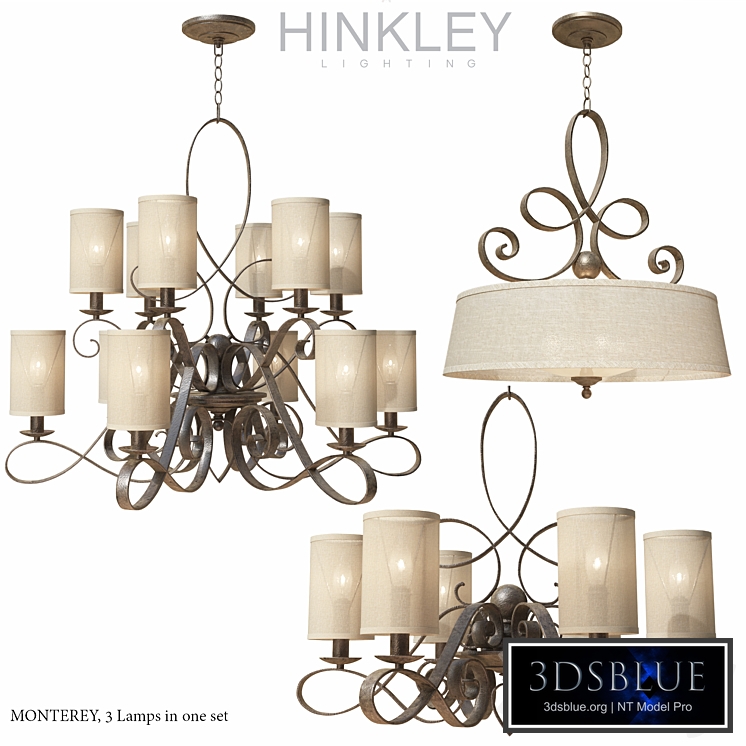 Set with 3 Hinkley bulbs. Series Monterey: 12 lamp chandelier FR42508BME, "brushed merlot" based material and "gordon silk" on the lampshades 6 lamp chandelier FR42506BME, "brushed merlot" based material and "gordon silk" on the lampshades the lamps FR42504BME, "brushed merlot" material and on the basis of "gordon silk" in the shade in the archive file 3dsMax 2013, 3dsMax 2016 textures and obj, Sorona Render, V-Ray.