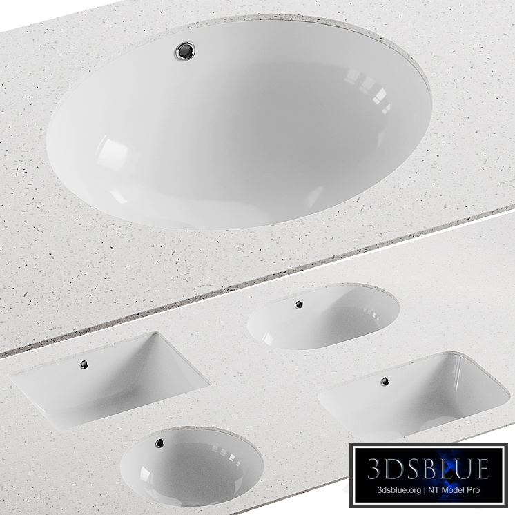 Universal set of five undermount sinks: -Round -Oval -Oval of a different shape :) -Rectangular with rounded corners -Rectangular with sharp corners There is a countertop for each sink Dimensions 1000*500*180 mm Three material options: -White granite countertop + glossy ceramic sink -Graphite matte ceramic countertop and sink -Colored ceramic countertop + glossy ceramic sink Corona version 9 CoronaLegacyMtl + Vray Materials In CoronaRender 6 and below CoronaLegacyMtl=CoronaMtl Textures and materials have logical names Vray materials are obtained by conversion Texturing Unwrap UVW