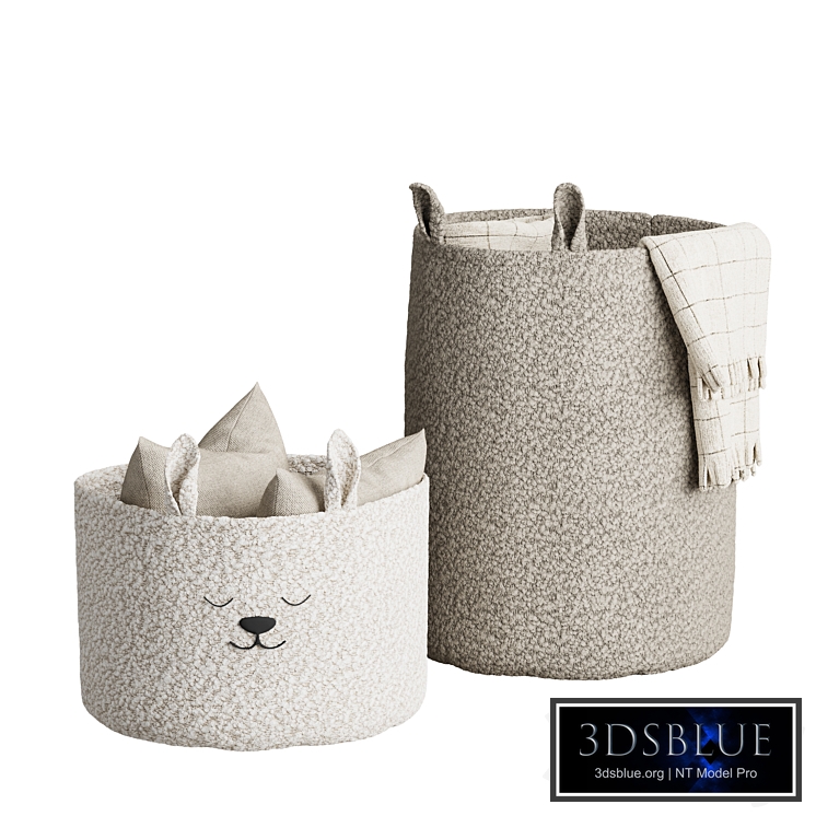A set of boucle baskets with pillows and a blanket for decorating a child's room. Format: 3Ds Max 2017 Export: OBJ, FBX Render: Corona Units: Millimeters