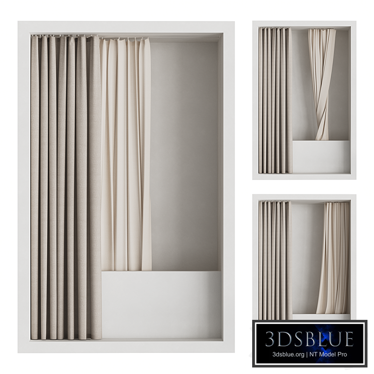 Shower curtain with hidden ceiling cornice. Beige curtain on the outside of the bathtub, milky - on the inside on a separate cornice. Height 270 cm. 2 colors - beige, milky. 3 options for the position of the milk curtain. In the archive: 3ds max 2019 Render: Corona (8), CoronaLegacyMtl, obj, fbx.