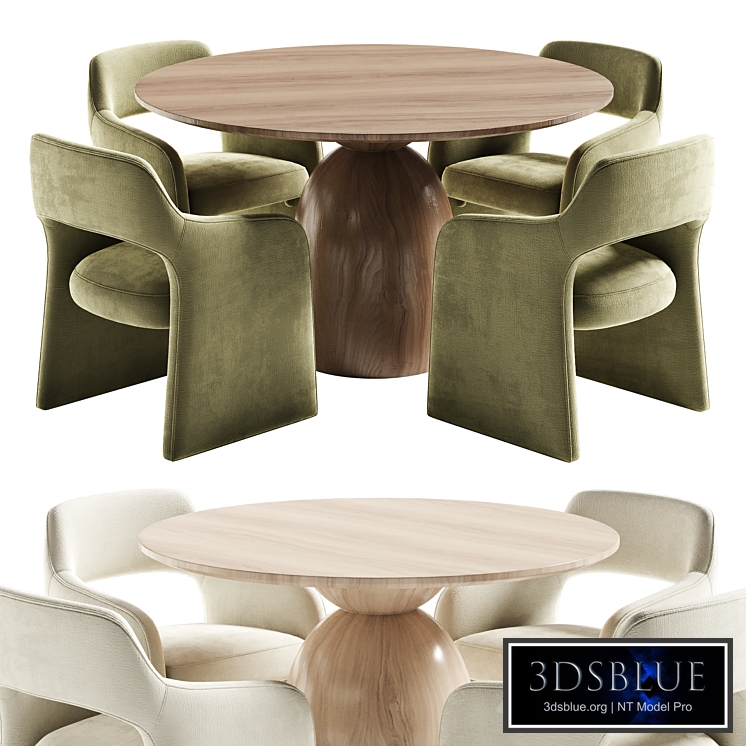 Sigrid table: Size: Ø1090 x 770 mm. Ø1300 x 770 mm. https://www.hernest.com/products/mid-century-modern-solid-wood-dining-table-with-pedestal-base-43_3-inch--p-3695.html Fintan Chair: Size: 610 x 560 x 760 mm. https://www.allmodern.com/furniture/pdp/fintan-boucle-dining-chair-a110000687.html Format: 3Ds Max 2014. Export: OBJ. Render: Corona (6) Units: Millimeters You can also buy other models: https://3dsky.org/users/cirius