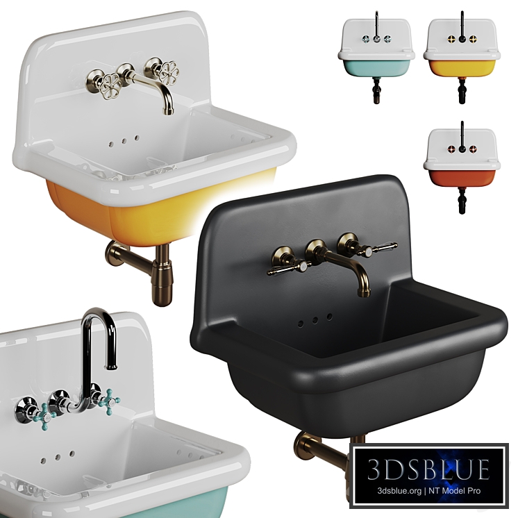 BLEU PROVENCE TRUECOLORS MEDIUM wall-mounted retro washbasin medium size Brand: Blue Provence Series: TrueColors Dimensions: 60x42x52.5cm Material: metal + ceramics The scene contains 5 types of sinks in different colors and with different faucets and spouts, which are shown in the preview. The color of the sink can be easily changed in the Corona Color card, or you can change the materials on the sinks between themselves. The modifier stack contains Turbosmooth set to Render Interations - 2 iterations in preview. The materials of the model are made in Corona Renderer - Legacy Mtl. Link: https://bleuprovence.it/en/product/true-colors-serie-truecolors-lavabo-medium/
