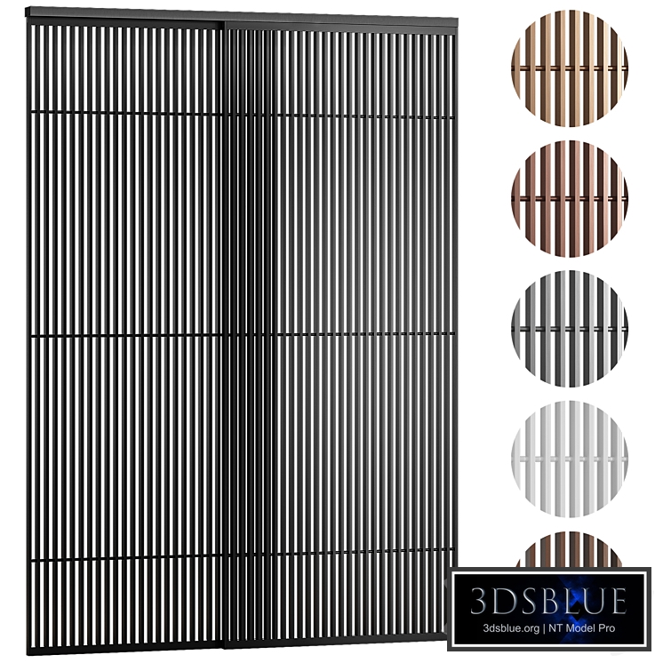 Forest sliding partitions from ADL. The archive contains models in finishes: white, black, brown, copper, titanium, bronze. The panels are made of vertical slats held together by thin cylindrical crossbars. The Forest model is a zoning system, the design of which allows you to visually delimit the space, allows sound and light to pass through. They are presented in shades of anodized aluminum and in a variant for painting according to the RAL and NCS catalogues.