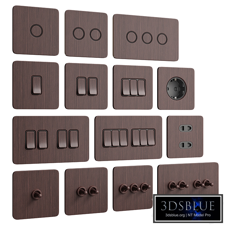 Ultimate II sockets and switches from Tjelectric The set is presented in 6 materials: 1. Ultimate II BZ Bronze; 2. Ultimate II BN Black Nickel; 3. Ultimate II PC Polished Chrome; 4. Ultimate II PC Polished Brass; 5. Ultimate II SS Stainless Steel; 6. Ultimate II QGE Matt Black Steel Link to the model: http://tjelectric.ru/ultimate-2 ----------------------- - TurboSmooth is superimposed on the model, 2 iterations are enabled during rendering; - the renderers for the previews are made in Corona Render 12. On Corona Physical Mtl models. Requires Corona Render +7 version;