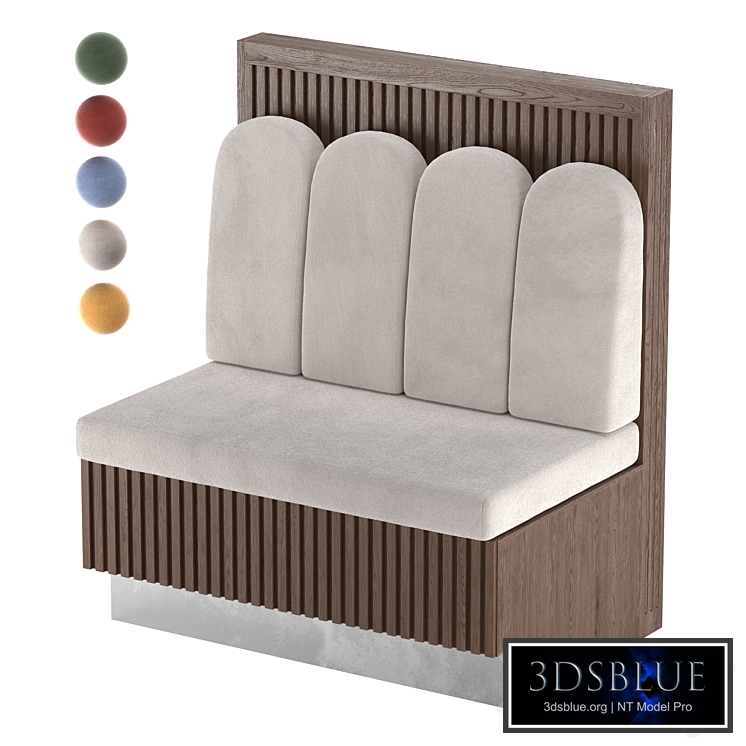 Sofa module for a public establishment. Module width - 1040mm. Seat height: 500mm. The sofa is presented as a group of objects (frame and upholstered part). To change the fabric material, switch to working with the fifth type of sub-objects (elements), select the required elements and enter the material number (from the list of multitexture materials) that you want to display in the "Set ID" section. To select the fabric color yourself, change the color of the "CoronaColor" card in the material. 5 different colors of fabric are distributed among different "Set ID" (from 1 to 5).