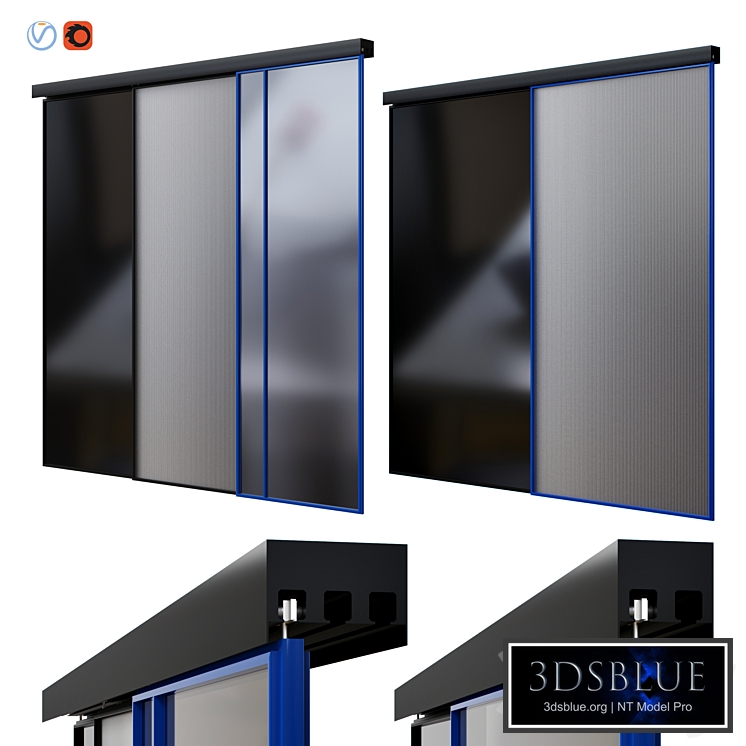 Producer - Sofia Model - Graphica 2 model options, for 2 doors and 3 doors Dimensions adjust only through Edit Poly, Edit Mesh Dimensions in the example: Width 3000 mm Depth 143 mm Height 2880 mm Glass of 3 types: black gloss, matte stripes, transparent. The color of the metal can be ordered different. Completely in the overall dimensions of the manufacturer. Preview made in Corona render 6.2. V-ray model may vary slightly. Scene in system units mm. Includes formats: Max v-ray 2014,2020, Corona max 2014, 2020, Obj, 3ds In 3ds, Obj, you need to reassign materials. Products webpage: https://sofiadoors.com/blog/grafichnyj-dizajn-i-beskompromissnoe-kachestvo-v-kollekcii-peregorodok-grafica/