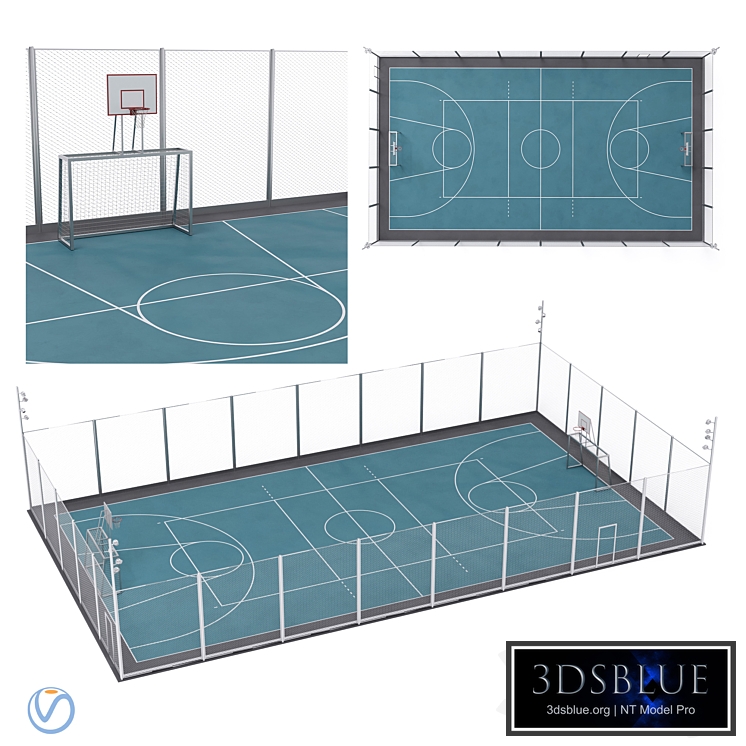 A universal fenced sports ground for playing basketball and mini football. Size: 30x17m. Faces: 1779964 Verts: 1991716 Vray: 4.20.00. Who works in V-Ray version lower than 3.1, be careful, in the materials in the BRDF section there is Microfaset GTR (GGX), if your version is older than 3.1, then the BRDF field will be empty. Choose Blinn, Phong or Ward - which is preferable for you. 3dsMax2016 + fbx, textures included.
