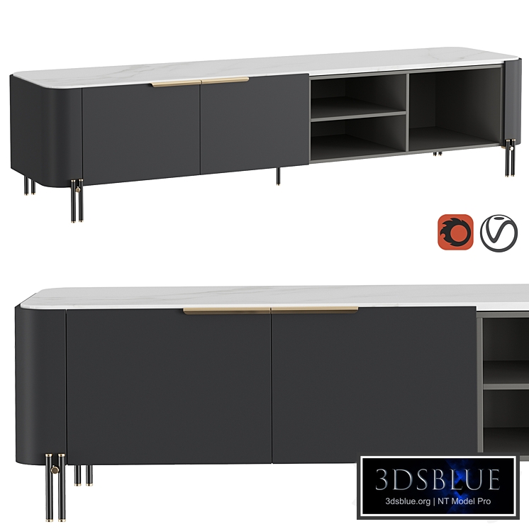 TV stand BAMBOO Factory PRADDY Portugal Collection NATUR NT072 H / W / D 51/220/55 cm The TV stand from the Praddy factory is made in a modern style. Equipped with paired tubular legs connected by metal parts, the model has two doors, wooden shelves. A white marble top and gold steel metal accents underline the sophistication of the model. NIGHT GRAY PR007. Archived: 3ds max 2016/2013 Corona / Vray + OBJ Checked for scripting viruses with Prune Scene.