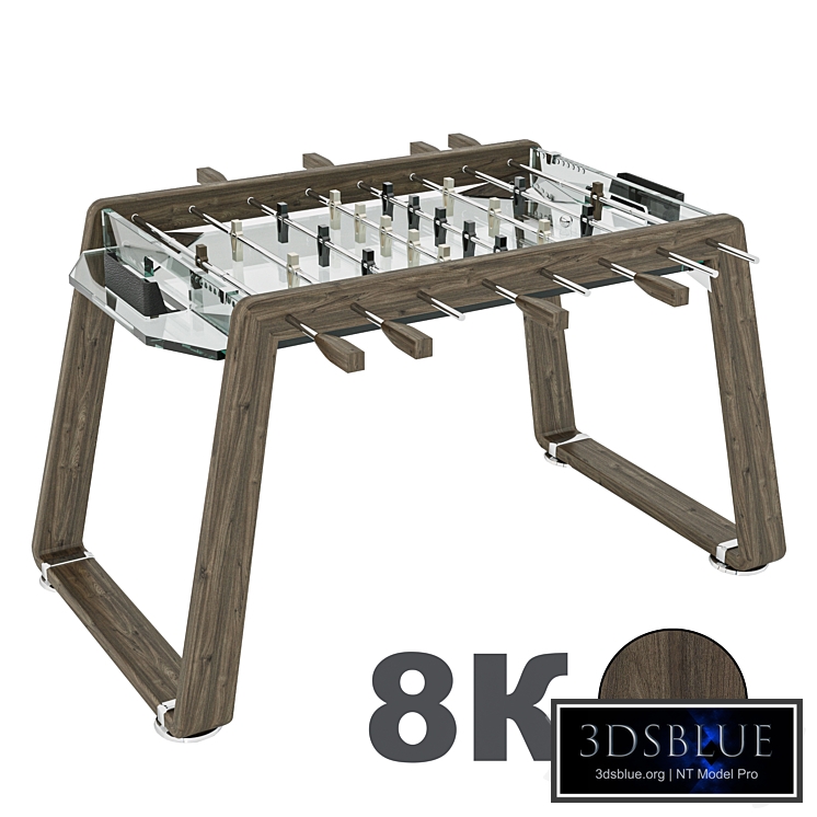 Table football Derby di Milano by Impatia Length - 153.2 cm Width - 88.5 cm Height - 85.8 cm Solid oak base Low iron glass playing surface Chrome-plated metal rods with oak handles Anodized aluminum player figures. 49728 polys 46598 verts. Formats: 3Ds Max 2015+OBJ