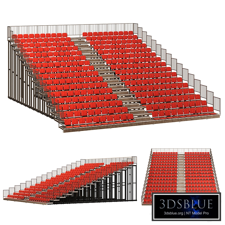 The telescopic, sliding tribune consists of modules and frames, forming rows at different levels. Places for landing spectators have standard indicators. Semi-soft chairs