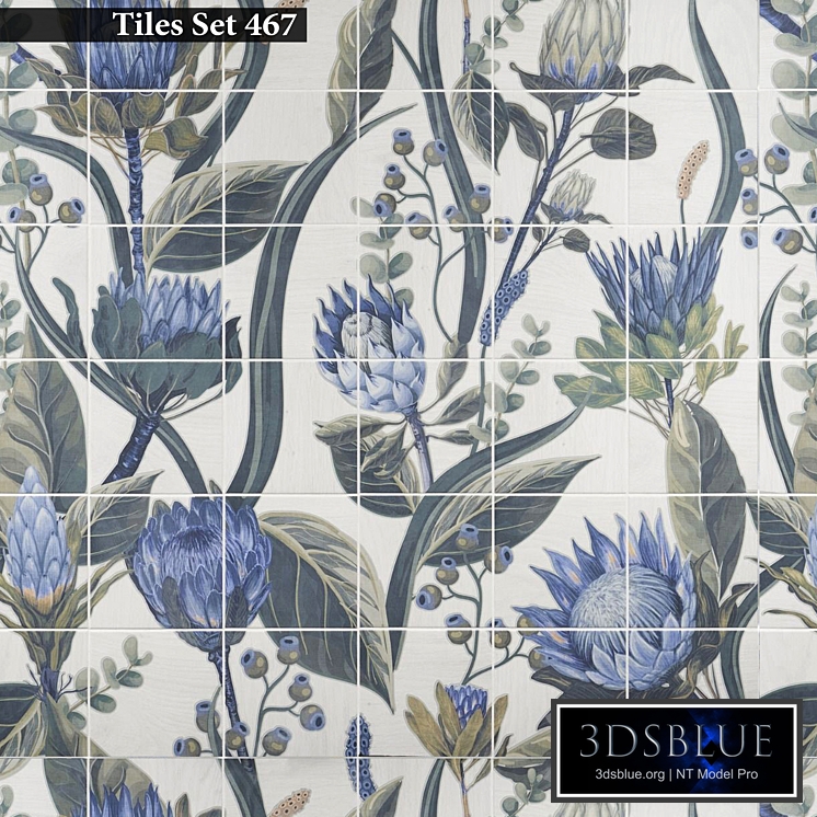 Tiles set 467 - Angela Harris Wilder Protea Leaves Mural Matte Porcelain Tile floral pattern - The tile is not made by geometry (texture) - Material - seamless texture (diffuse+bump) - Without using plugins - In the preview, the tiles may look larger or smaller than in reality! Check the sizes Previous collection: https://3dsky.org/3dmodels/show/tiles_set_466_devon_and_devon