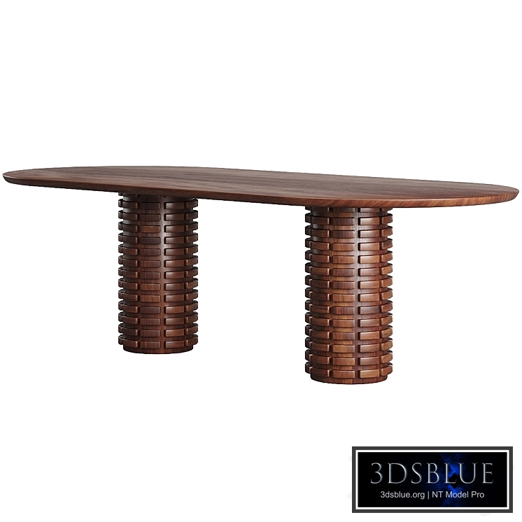 Designed by Sandra Githinji, mahogany oval dining table pairs traditional African architectural details with a modern silhouette. Born in Kenya and raised in Naarm (Melbourne), Australia, Sandra Githinji centers her designs on an African perspective. "Toron references the traditional architecture of the African peoples of the Sahel and Sudanian grassland regions. Facades are decorated with bundles of rodier palm sticks called 'toron' that project away from the wall as a type of scaffolding," explains the designer. Mahogany has been stained for a dark, powerful presence while still retaining its organic character, creating a one-of-a-kind piece with timeless appeal. https://www.cb2.com/toron-oval-mahogany-wood-dining-table-100/s657065