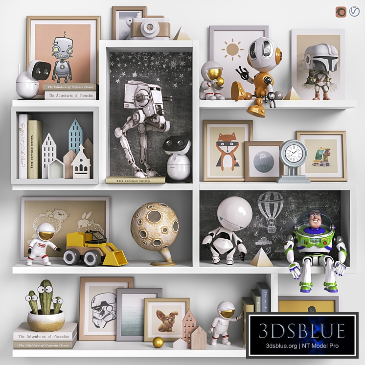 CORONA + VRAY (2013) FBX CORONA + VRAY (2009) A set of toys, decor and accessories for the children's room. The set contains: Children's toy - walker model "AT - ST". Decorative figurines "Astronauts". Children's decorative camera. Interactive toy Baz Lightyear. Children's set of toys "Houses". Typewriter "LILLABU" (IKEA). Figurine "Mandalorian". Figurine "Asteroid". Wooden machine. Vase with cactus. Video baby monitors. Paintings Robots. Books. Shelves. Watch. Balls. Sets with similar themes: https://3dsky.org/3dmodels/show/igrushki_dekor_i_mebel_dlia_detskoi_119 https://3dsky.org/3dmodels/show/igrushki_dekor_i_mebel_dlia_detskoi_137 https://3dsky.org/3dmodels/show/igrushki_dekor_i_mebel_dlia_detskoi_120_1 https://3dsky.org/3dmodels/show/igrushki_dekor_i_mebel_dlia_detskoi_117 Other sets : https://3dsky.org/users/solomon5555/models