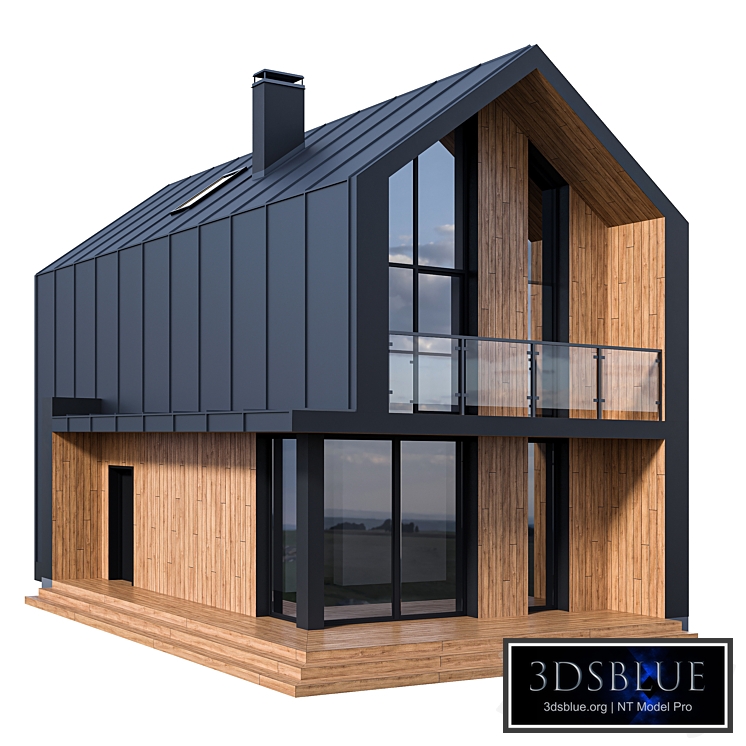 Stylish and modern Barnhouse with a terrace. Finished with wooden planks. Glass railings on the second floor. Barnhouse dimensions 12.8 mx 8.7 m Barnhouse height 10.1 m Polys 39 601 Verts 22 989