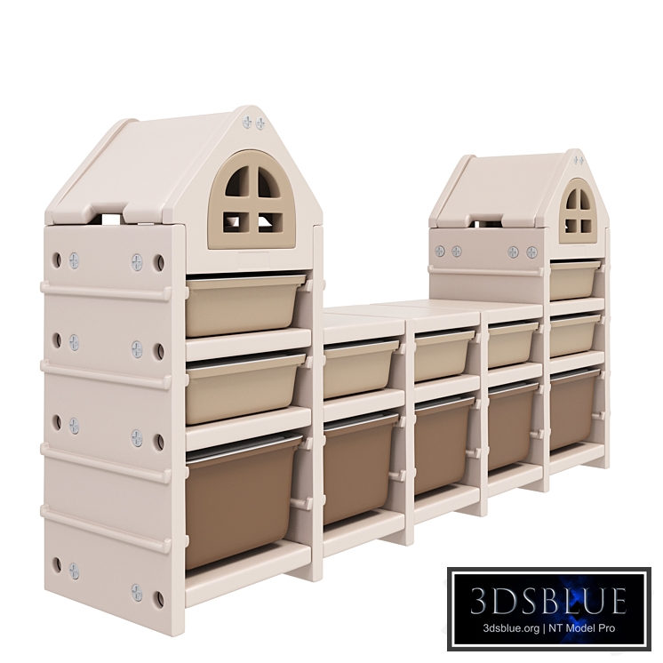 Seller's website https://elephant.ru/catalog/detskaya_komnata/sistemy_khraneniya/stellazh-dlya-detey/stellazh_dlya_igrushek_unix_kids_camel_12_yashchikov.html Material: plastic Size 170*37*95 Color beige Model in mm. For smoothing Corona Render Number of polygons 67,340 before smoothing