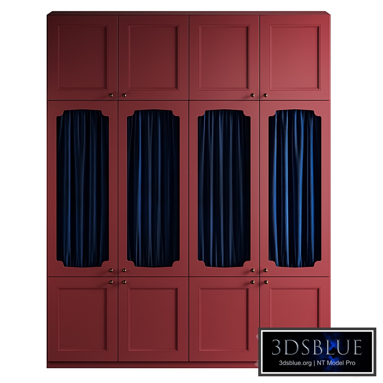 Wardrobe with figured doors and curtains in velvet fabric. Materials are presented in 2 versions - Corona Physical and Corona Legacy. The model is easily editable. Each door, curtains and handles are separate elements. Dimensions: 2000mm x 600mm x 2500mm The model is suitable for hallway / hall / bedroom / living room / children's room / study / dining room