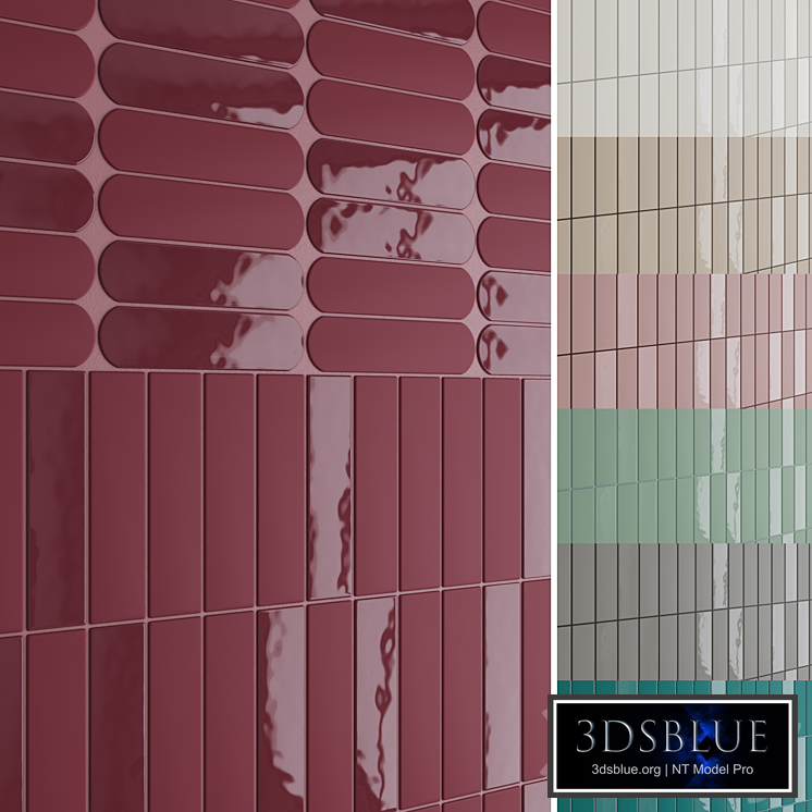 In the archive: - files max 2015 (Corona), max 2021 (Corona). - FBX/OBJ - 1 Normal map with a resolution of 512 x 512 px for glossy tile material. - 1 b/w map for Reflect, Reflect Gloss and Bump with a resolution of 1024 x 1024 px for the grout material. - Layout of oval tiles, dimensions of one tile 300 x 75 mm. - Layout of rectangular tiles, dimensions of one tile 300 x 75 mm. - Plane with grouting material. - Plates with customized tile materials in 7 colors and two surface options - glossy and matte. - Spheres with customized grouting materials in 7 colors. For Corona render, it is recommended to install version no lower than 1.5, since the glossiness of materials is configured taking into account PBR.
