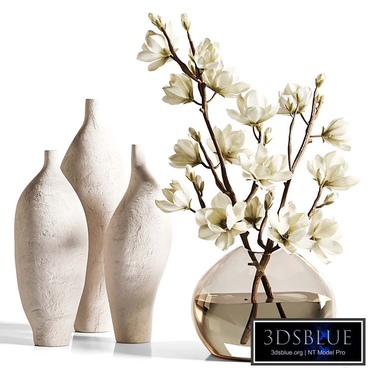 A sculptural floral arrangement featuring graceful white magnolia blooms flowing in a natural arc. The design is inspired by wabi-sabi and the elegance of botanical asymmetry – capturing the quiet drama of nature through movement, balance, and light. The bouquet is presented in a tall, clear glass vase with delicate reflections and a minimalist silhouette. The transparency of the vase allows the organic structure of the stems to be visible, enhancing the natural authenticity of the arrangement. Material options include soft pink blossoms and a sleek black ceramic vase, offering versatile styling options. This model brings a soft poetic atmosphere to your renders – where air, light, and nature interact in visual harmony. The model includes: Magnolia Bouquet – White and soft pink magnolia flowers with gentle curvature, natural folds, and soft detailing, arranged in an open, airy arc with artistic asymmetry Clear Glass Vase – A tall, minimalist glass vase with clean lines and subtle highlights, offering visual lightness and structural transparency Black Ceramic Vase – Sleek and matte-finished, providing a bold contrast and modern look All parts are cleanly grouped and can be modified or repositioned easily for different scene needs. Key Features: Realistic magnolia blossoms with soft translucency in white and pink variants Sculptural arc-shaped composition with natural flow Transparent and black vase material options Modular hierarchy and clean grouping Works beautifully in daylight or soft studio lighting Ideal for calm interiors, floral close-ups, and tabletop styling Compatibility Notes: For V-Ray versions older than 3.1, note that the BRDF section in materials uses Microfacet GTR (GGX). If your version is older, this field will be empty. You can manually switch to Blinn, Phong, or Ward, depending on your preference. For Corona Renderer, it is recommended to use version 1.5 or higher, as the material glossiness is adjusted considering PBR standards. OBJ version includes baked mesh without modifiers Turbosmooth applied twice on the vase in an isolated state. To optimize performance, users can disable the Turbosmooth modifiers temporarily. Do NOT collapse the Turbosmooth modifiers, as it will alter the model's mesh and cause issues.
