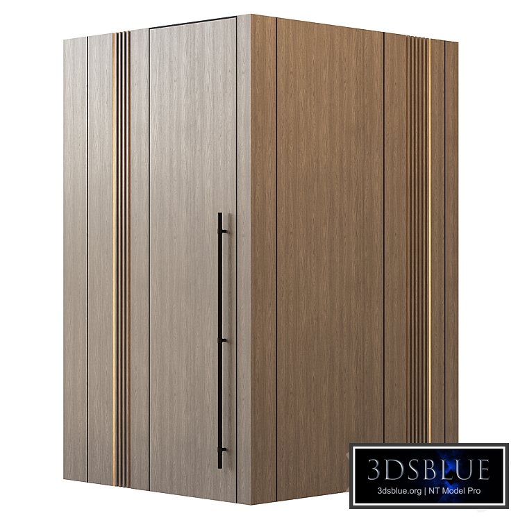 Wardrobe in wooden finish with slats and metal profile. On the other side is a door to the wardrobe. The model is made in 3ds max 2018 in Corona Render, as well as an OBJ file. Renders are made in Corona Render 10.