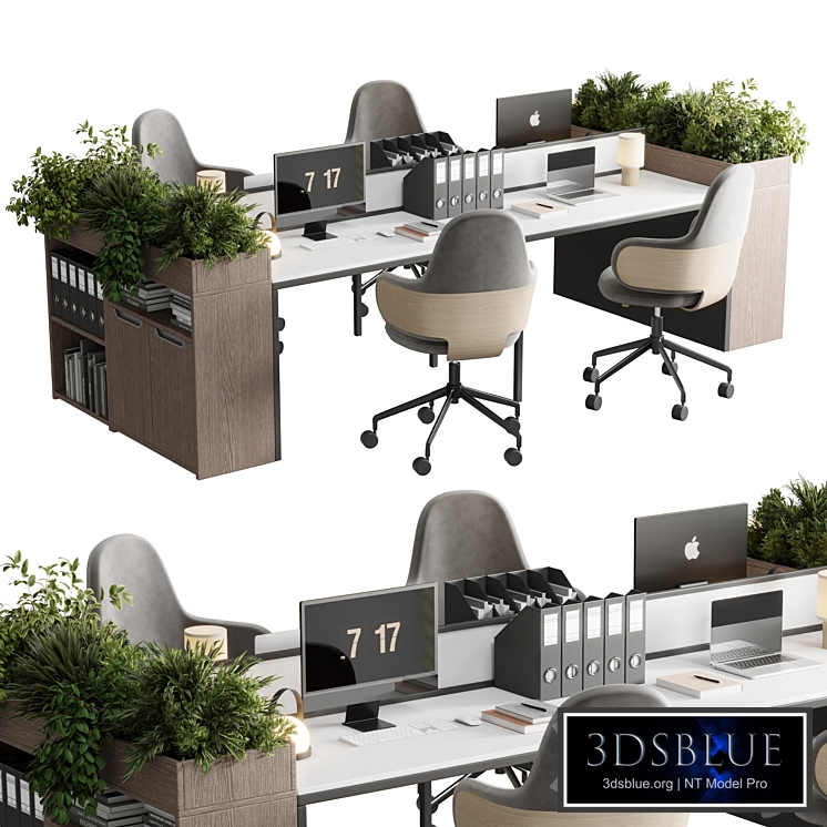 Workplace - Home office set - office furniture - Employee desk 21 File 3dmax 2015 vray_corona export file obj furniture, office, workplace, working, place, table, chair, arm, tablet, apple, computer, decor, floor, lamp, misuto, study, light, clock, trash, bin, indoor, plant, houseplants, soil, leaves, branch, decorative, flower, glass, luxury, vase, home, bouquet,