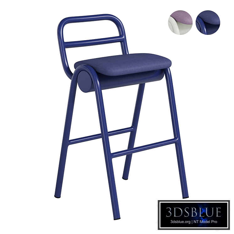 A bar stool with a back in two colors from the Zum collection. Made according to the dimensions and photos from the manufacturer's website: https://www.missana.es/product/zum-bar-stool/ The dimensions of the model are 90 cm high (35.4 in): Length 49cm (19.3in) Width 51cm (20.0in) Height 90 cm (35.4in) The dimensions of the model are 100 cm high (39.4in): Length 49cm (19.3in) Width 51cm (20.0in) Height 100 cm (39.4in) There are 4 copies of the model stored in the scene (2 sizes of 2 colors each), each with its own customized material. All the objects have normal names. All materials have convenient names. All textures have a unique name with the model of this chair. Each model in the scene has a Turbosmooth modifier assigned in Render Iterations=3 mode, which is applied only during rendering. The model is saved in the obj file with Turbosmooth applied. Weight of the 90 cm (35.4in) high model without Turbosmooth: 6680 polygons 6737 vertexes Weight of the 100 cm (39.4in) high model without Turbosmooth: 6680 polygons , 6735 vertexes The Pivot Point is aligned to the center of the model. Those who work in V-Ray versions lower than 3.1 be careful, the materials in the BRDF section contain Microfaset GTR ( GGX), if your version is older than 3.1, then the BRDF field will be empty. Choose Blinn, Phong or Ward, whichever is preferable for you. For Corona render, it is recommended to install a version not lower than 1.5, since the glossiness of the materials is configured with PBR in mind.