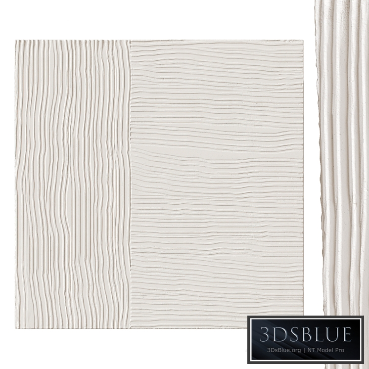 White abstract plaster panel (wall sculpture) with three-dimensional strokes on canvas.