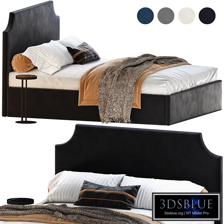 Adona-Floor double bed with Shento banquette from the famous manufacturer Divan.ru ( divan.ru ) with a high upholstered headboard, in 4 velor / velvet colors with a full set of bed linen, decorative pillows and a bedspread. In the model, the bed is in black, the banquette is the same, the rest of the upholstery on the boxes is nearby, it is quick and easy to take it with a pipette.