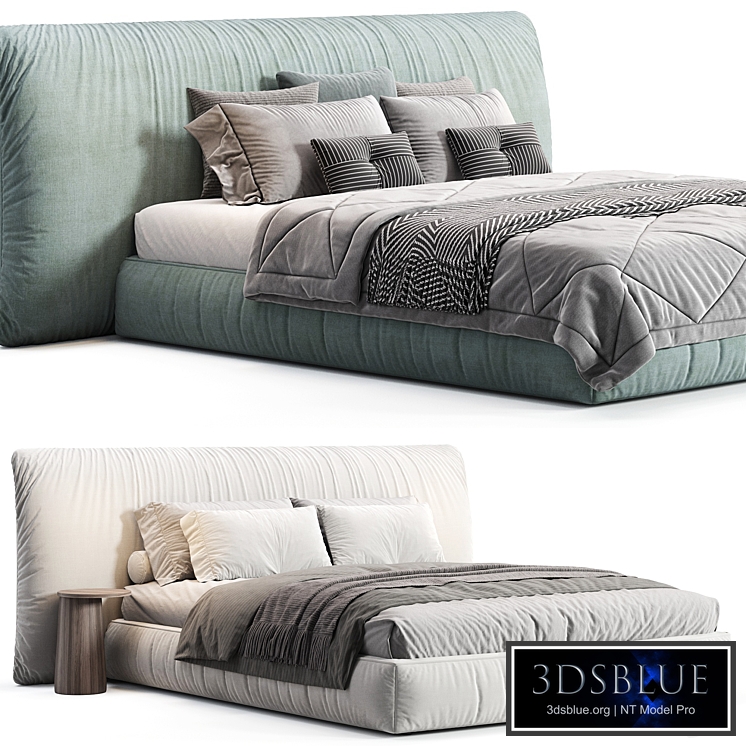 Alix Blue Cotton Linen Fabric Wide Headboard Luxury Bed