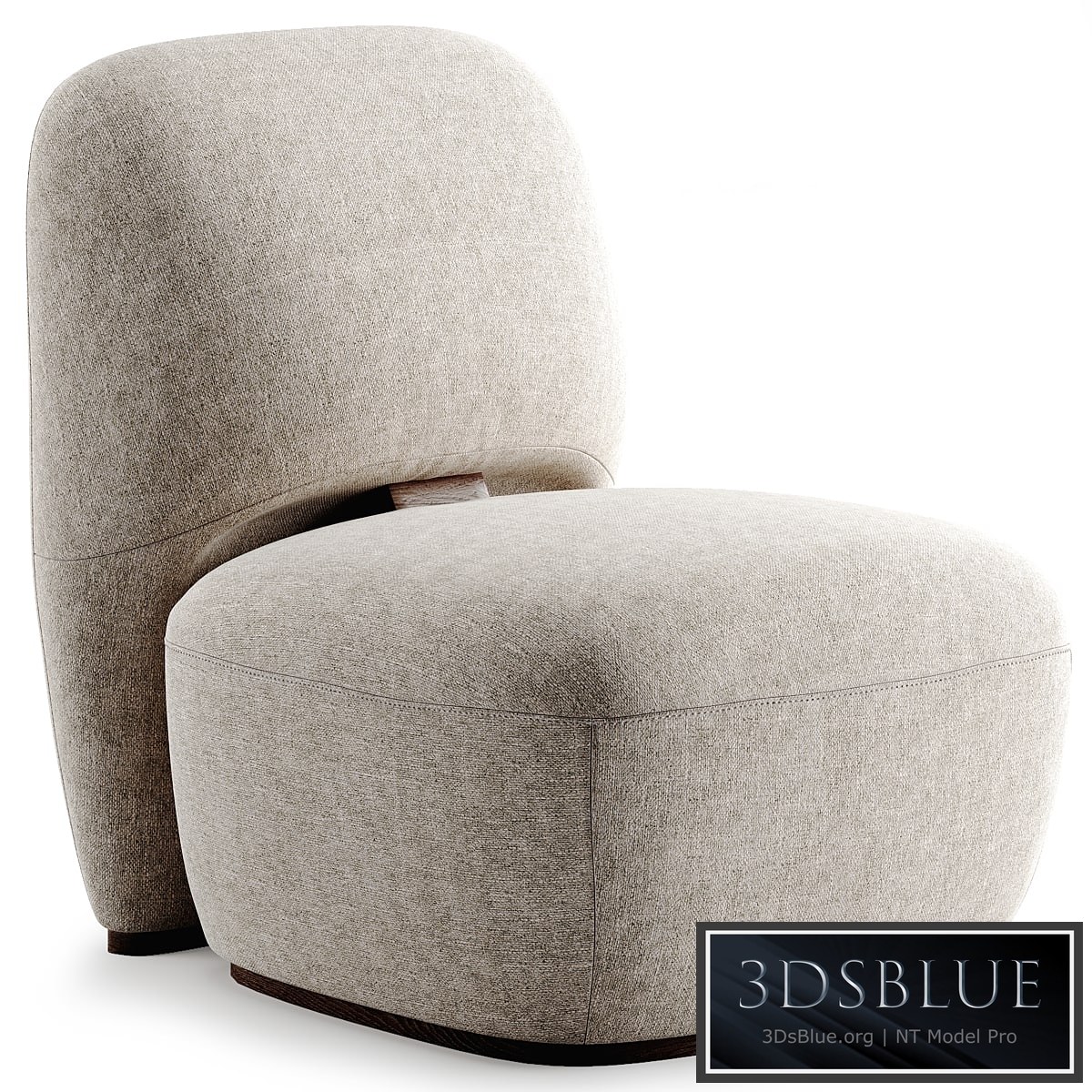 Certified wood frame, 100% melange cotton upholstery, organic design and sculptural form... Landon armchair with overlapping shapes and materials. Round shape.