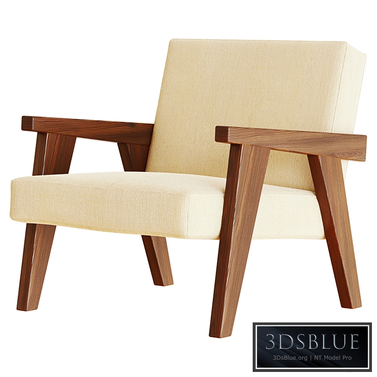 Armchair upholstered in 100% beige hemp fabric. Spanish walnut frame with hand-applied matt wax finish.