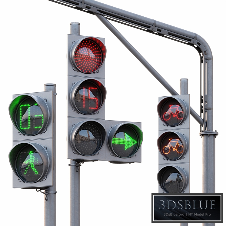 Animated traffic lights with arrows, pedestrian and bicycle. Full animation with blinking. The sizes correspond to the real ones.