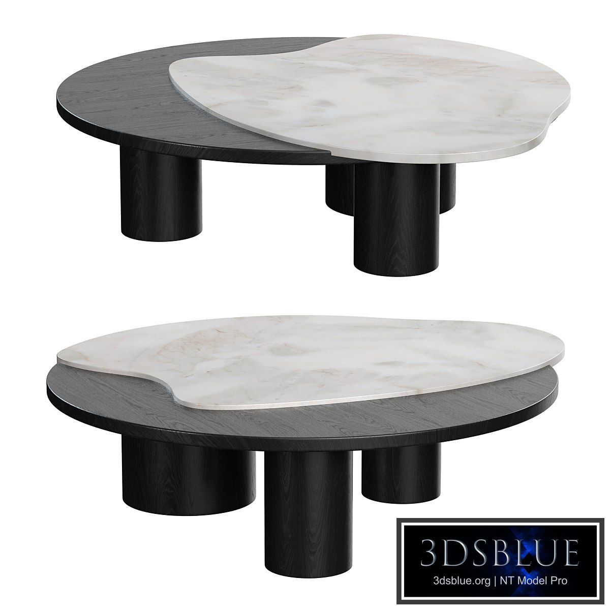 Inspired by the lines of the beautiful Bordeira beach, this low table adds a representation of our earth's visual history to every living space. Its organic, flowing form creates a stunning combination between the lush stone texture of the Calacatta Cremo marble and the black lacquered wood.