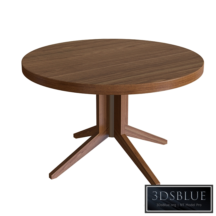 Round dining table with base in solid oak or canaletta walnut.
