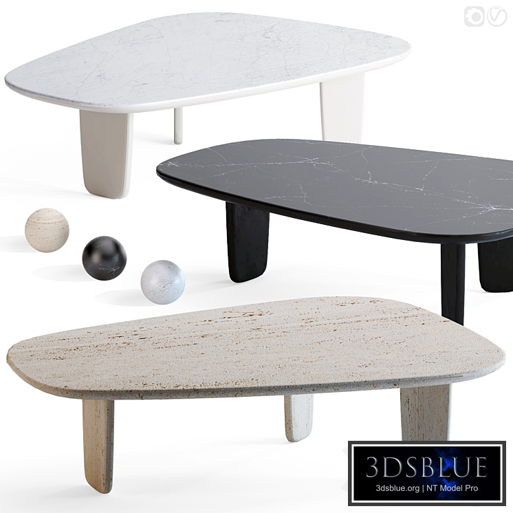 Dolmena coffee table from AM.PM in three colors: travertine, black and white marble. The model is made for smoothing.