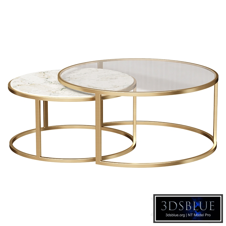 Metal Framed Nesting Coffee Tables With Glass And Marble Tops, Set Of Two, Gold