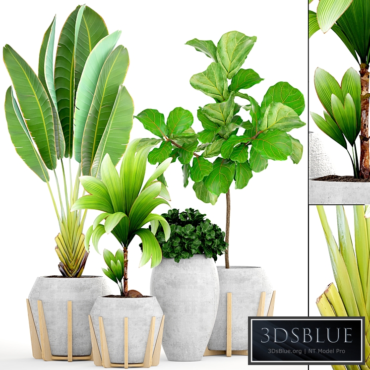 Concrete flowerpot, flower, pot, Ficus lyrata, tree, bush, coconut tree, exotic, decorative