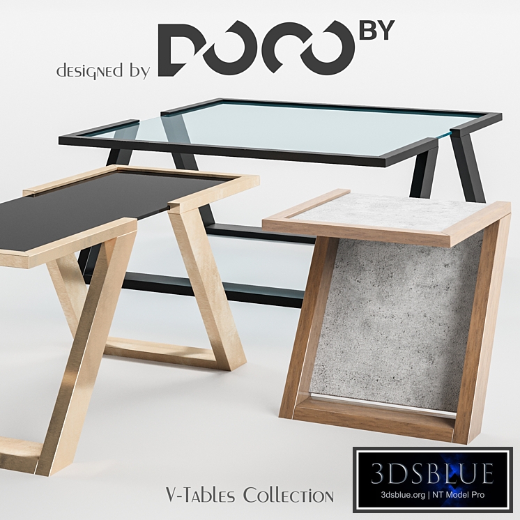 Collection of tables V-collection (magazine, bedside, coffee) from the design studio DOCOby. In the file 3 modifications tables in five colors = total 15 tables. Name: DOCOby_Tables_V_collection Version: 2014 Preview: Yes Units: Centimeters Dimension: 431.63x186.16x24.94 Polys: 6,220 XForm: Yes Box Trick: Yes Model Parts: 113 Render: Corona Formats: 3Ds Max 2014, OBJ, FBX
