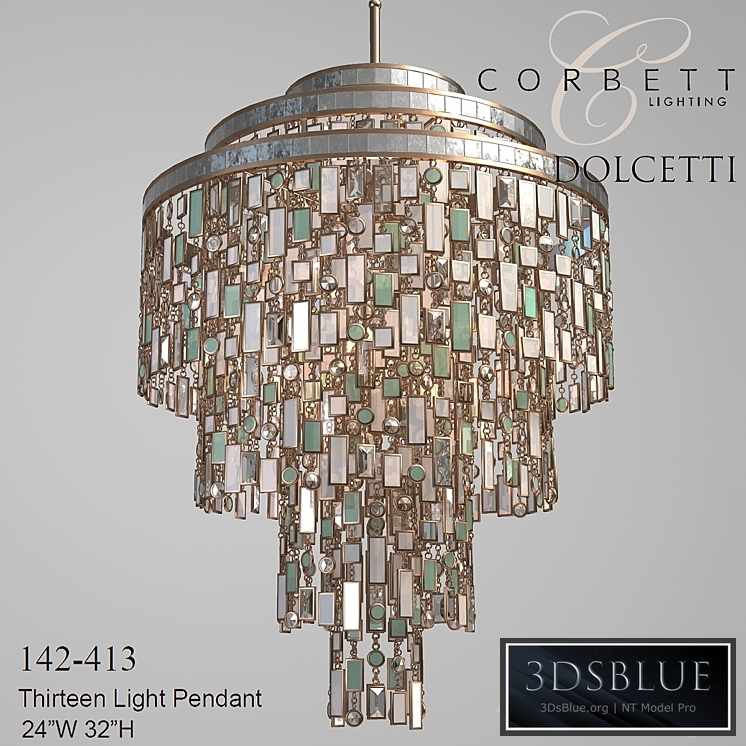 142-413 Thirteen Light Pendant Dolcetti Silver Finish Mixed Shells with Crystal, Stainless Accents Hand Crafted Iron 24 "W 32" H 13-60W Cand Base