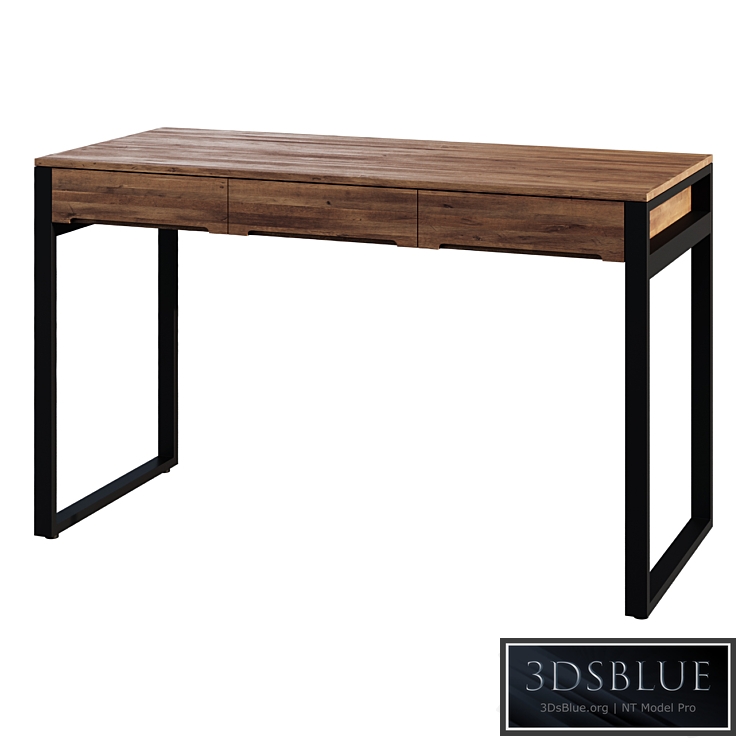 Modern Wooden Natural & Black Office Desk with Drawers & Metal Legs