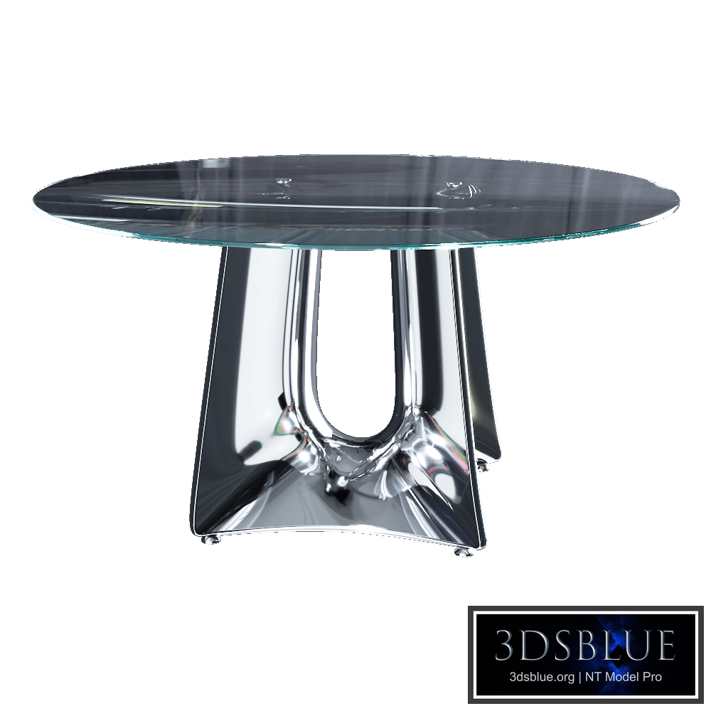 Table with cast aluminum base and transparent tempered glass top (10 mm thick).