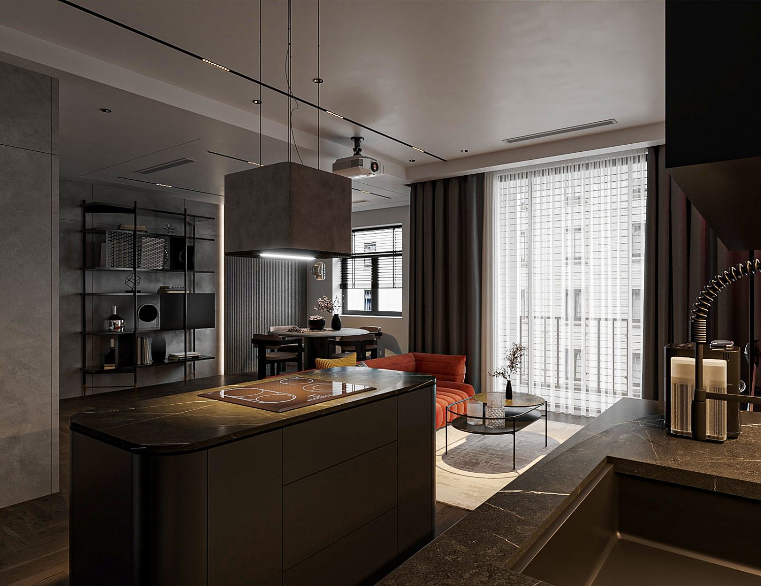 Trung Nghia - Download Free Living Room- Kitchen Interior Model