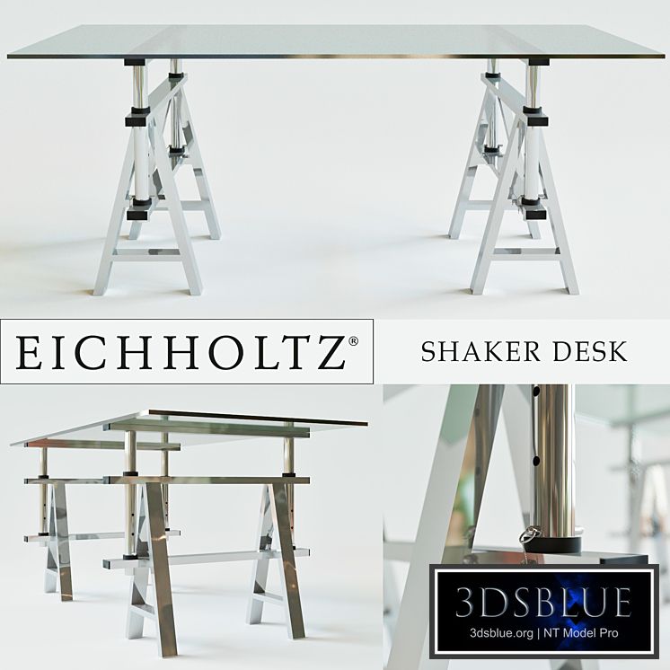 http://www.eichholtz.com/desk-shaker-103728 Information: Stainless steel | clear glass top Dimensions: 190 x 90 x H. 64-77 cm