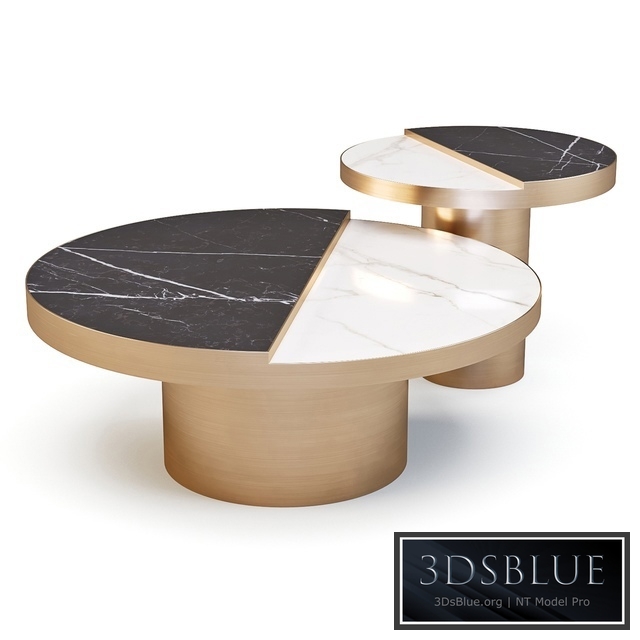 - Accent your living room with the ultra-chic Excelsior tables. The exceptional tabletop consists of two semi-circular marble plates. Compared to the white marble part, the black marble part is larger and slightly raised. The base and rim of this striking end table have a brushed brass finish.