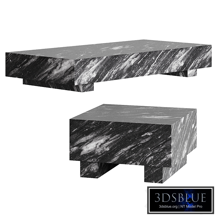 Inspired by ancient post-and-lintel construction, oversized square coffee table by VUUE has a bold, architectural form. Highly active blue Florence marble features prominent veining in cool tones of grey; due to the natural beauty of the stone, each piece is unique. Scaled to complement large sectionals and spacious rooms, this low table makes a graphic statement in its simplicity.