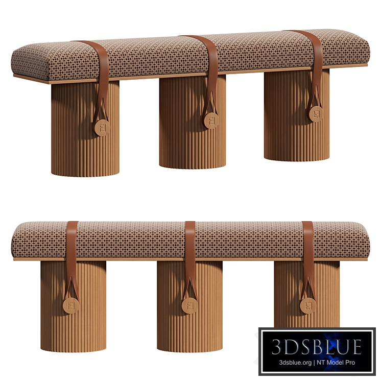 The F-ench bench seat by Fendi Casa Studio is a stunning harmony of volumes. The padded seat, available in fabric or leather, is wrapped in leather straps, fastened to FF-logoed studs down the sides of the three cylindrical legs. The clear nodes to Fendi sartorial elements make for a versatile composition that signals a new approach to convivial living.