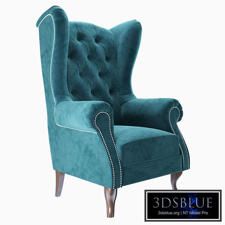 Fireplace armchair with ears (capitonné). The model was created for custom-made