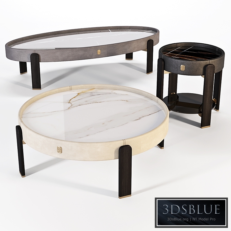 champagne and satin gold, open-pore black ash legs, marble top with leather